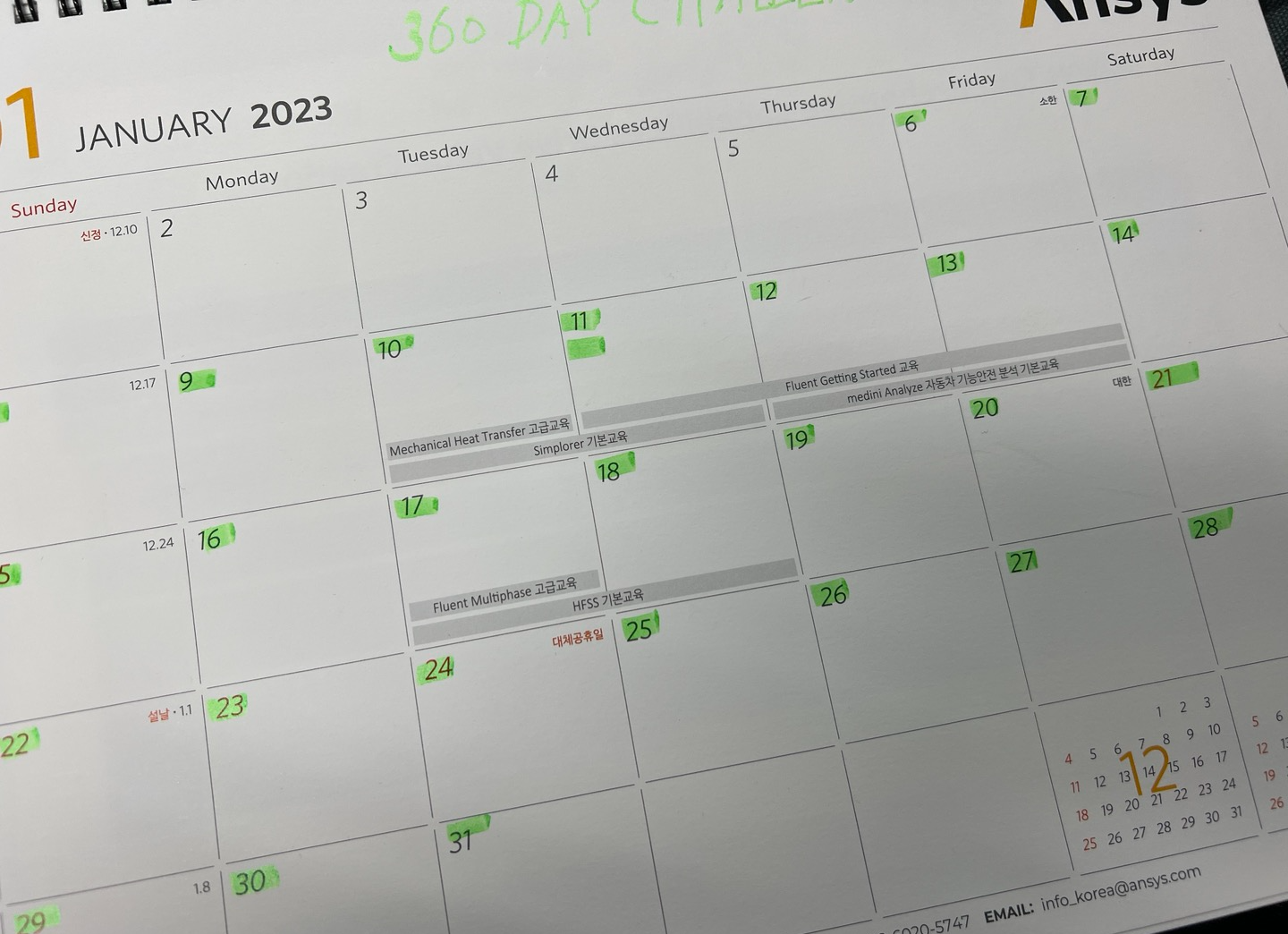 작심삼일은 없다. 지난 달 6일부터 시작한 챌린지는 순항하고 있다. 2023년 1월을 시작하면서 사업장에서 카메라와 음향 테스트를 매일 하기로 결정했었다. 일정상 불안한 적도 있었지만, 설날 연휴에도 꼬박꼬박 테스트 데이터를 모을 수 있었다. 이건 시작에 불과하다. 작년까지도 이 아이템을 수행하는 내 능력은 기복이 심해서 일주일씩 손을 놔버리거나 게을러지는 경우도 많았다. 새해를 시작하면서 이걸 바꿀 수 있었던 이유는 뭘까.