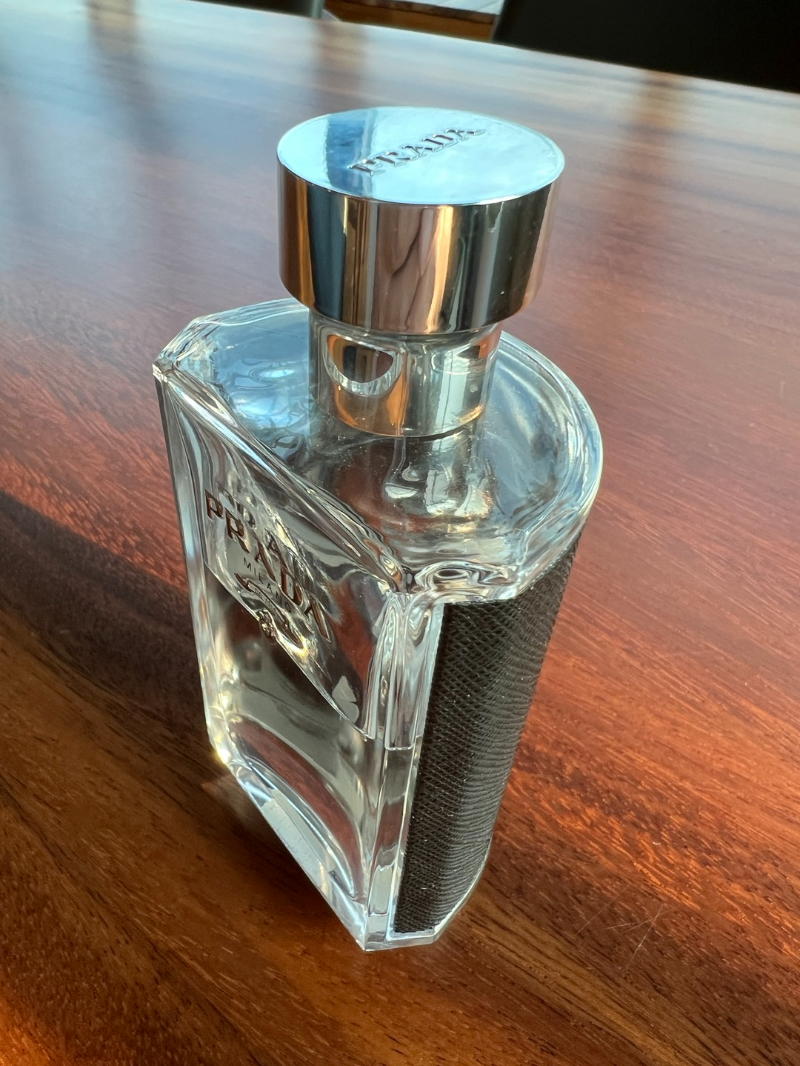 반원형의 바틀과 금속 캡, 평면은 투명하고, 곡면은 가죽 질감의 마감으로 디자인 된 병은 고급스럽지만 단순하다. Prada라는 각인이 잘 드러나면서도 보관중에 햇빛이 들어오는 쪽을 검정색으로 처리가 된 곡면이 향하도록 두면 빛으로부터 향수를 보호하는 기능도 일부 할 수 있다. 직선과 곡선이 적절하게 어우러진 디자인도 마음에 든다. 무엇보다 이 정도 향수를 10만원 내외로 구할 수 있다는 점은 매력적이다.