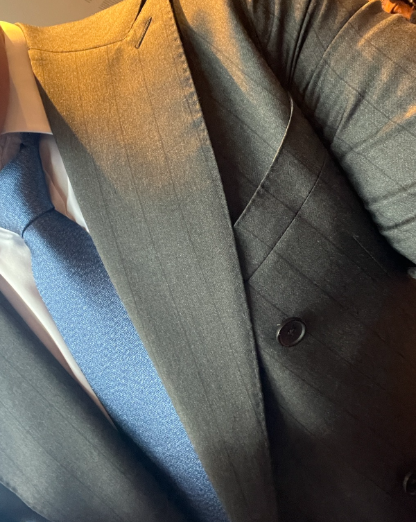 한 가지 후회되는 것은 첫 수트부터 너무 과감하게 질러서 더블브레스티드를 선택했다는 사실이다. 결혼식에 갈 때는 전혀 상관 없지만, 비즈니스 목적으로 사용하기에는 과한 감이 있다. 네이비 싱글브레스티드가 첫 수트로는 더 좋은 선택이고, 사실 이것이 내가 별도로 브룩스브라더스에서 네이비 블레이저를 구매했던 이유다. 그나마 내 어깨가 좀 있어서 피크드 라펠 (Peaked Lapel) 이 소화가 되는 것이지, 어깨가 조금만 작았다면 오버였을 것 같다. 이 지점에서, 한 벌 더 있었으면 하는 생각이 든다.