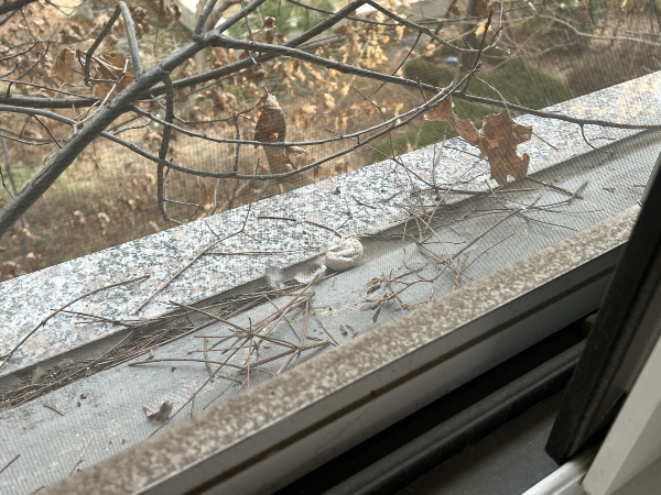 이사를 마치고 혹시나 싶어서 대피공간 앞 좁은 난간에 비둘기가 둥지를 틀지 않았나 확인해봤더니, 아니나 다를까 마침 확인하는 그 순간 어미 비둘기가 둥지를 틀고 알을 품고 있었다. 어미 비둘기는 어지간한 소리나 진동에도 움직이지 않고 알을 품었다. 방충망만 남겨 놓은 상태에서 공책을 던져 어미 비둘기를 몰아내고 둥지를 보니 알이 세 개쯤 있었다. 나는 망설이지 않고 그 둥지를 밀어버렸다.