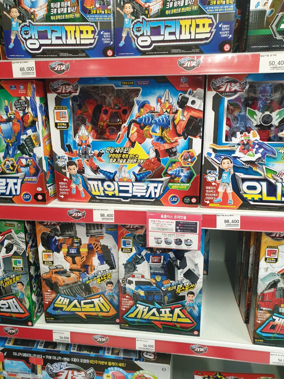 지구를 구하는 최상위의 방위사업이기 때문에 당연히 방위사업의 규모도 엄청나다. 다음 사진을 보면 얼마나 로봇 대전쟁의 시대에 설고 있는지 알 수 있다. 미니특공대의 펜타트론X와 더불어 헬로카봇과 또봇은 서로 경쟁 관계에 있다. 차세대 전투기사업이나 한국형 발사체 산업에 맞먹는 규모라고 단언할 수 있다. 아이들과 부모들은 로봇대전쟁의 시대에 살고 있다.